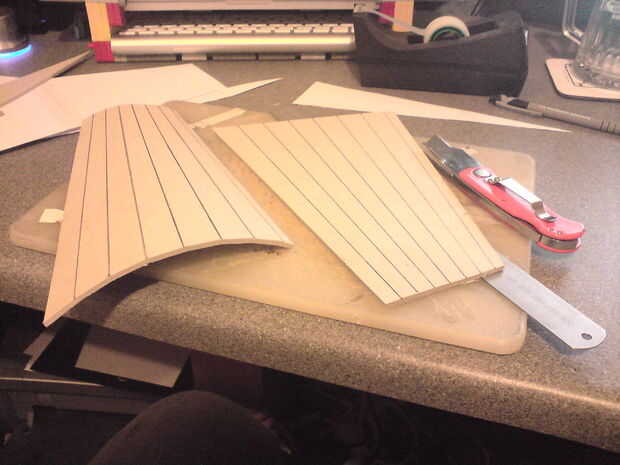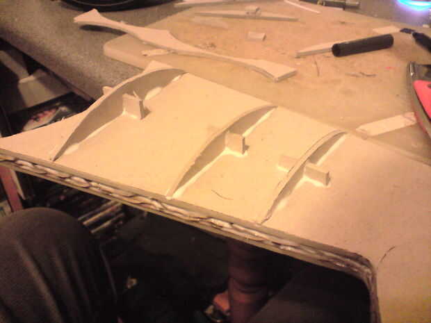 • Cuadros 5-9 el edificio de la culata, esto se hizo mediante la creación de una serie de pequeños puentes a cada lado. Luego hice dos secciones de 'tapa', que tenía marcas de puntuación en ellos para que puedan doblarse. Entonces sólo pegué lo todo en su lugar con PVA y superglued a sección de relleno.