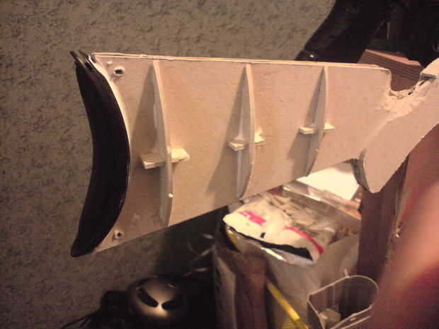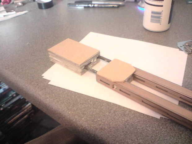 • Fotos 1-4 Mostrar el edificio encima del extremo del barril, fue hecho de cartón construido y un par de soportes de 90 grados, estos fueron superglued, entonces PVAed en su lugar.