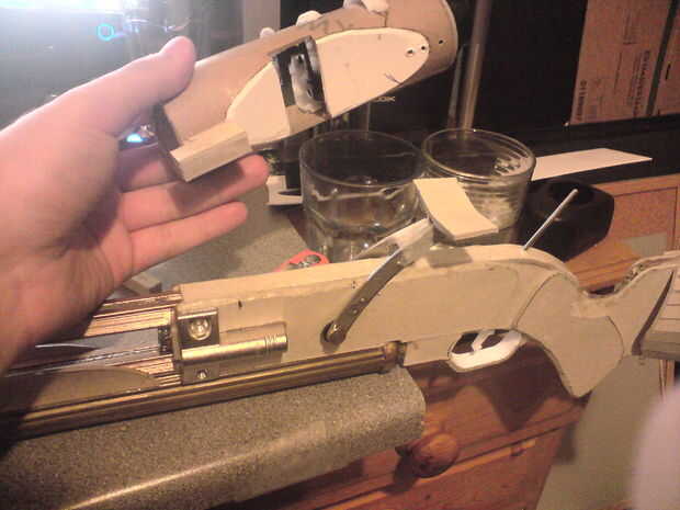 • El cuadro 7 demuestra el sistema utilizan para sujetar el alcance en la pistola, el peso principal se toma de la articulación de dos secciones, y la pequeña losa de la tarjeta hacia el frente.