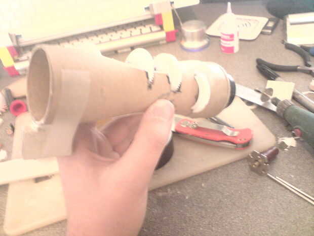 • Cuadros 1-4 como había curvada una sección a cada lado y rellena con tarjeta, el extremo más pequeño también tenía un anillo adicional de la tarjeta a que se ajuste la anchura del tubo.