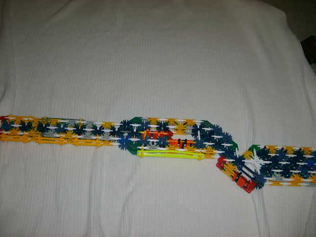 esto es, de lejos mi mejor arma diseñado que he hecho. es muy precisa y con una buena banda de goma tiene un buen rango (40-50 pies). la acción es duradera y el mango diseñado para parecerse a los springfields. está cargada y dispara barras blancas.
