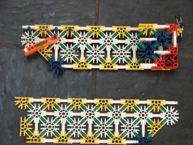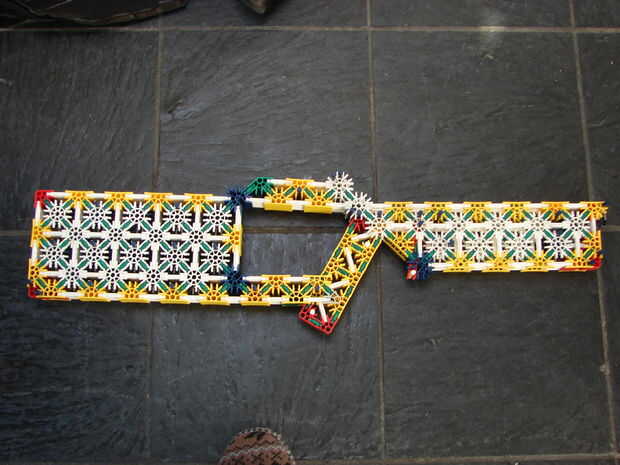 este francotirador dispara varillas gris con rojo conectores Unidos. It´s un francotirador muy potente. sus brotes a través de una caja de zapatos. habían hecho mi hermano y yo.