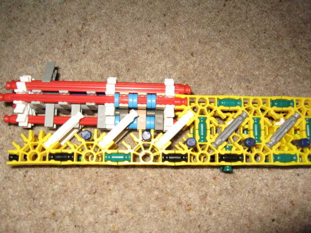 este francotirador dispara varillas gris con rojo conectores Unidos. It´s un francotirador muy potente. sus brotes a través de una caja de zapatos. habían hecho mi hermano y yo.