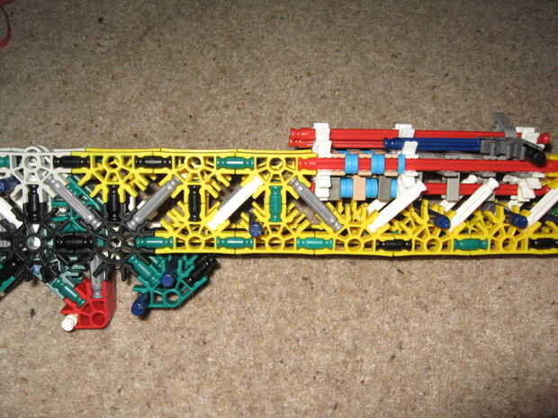 este francotirador dispara varillas gris con rojo conectores Unidos. It´s un francotirador muy potente. sus brotes a través de una caja de zapatos. habían hecho mi hermano y yo.
