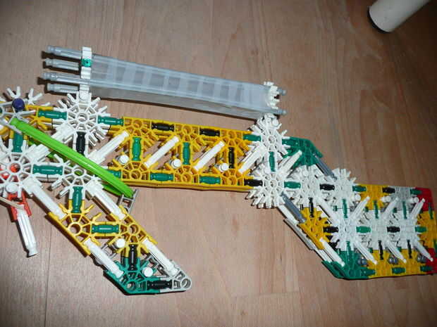 este francotirador dispara varillas gris con rojo conectores Unidos. It´s un francotirador muy potente. sus brotes a través de una caja de zapatos. habían hecho mi hermano y yo.