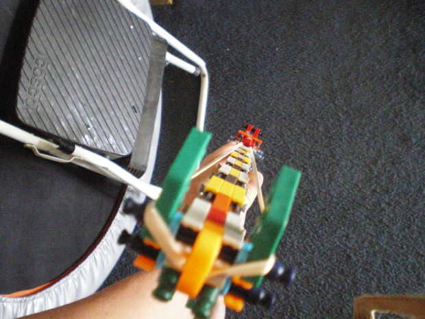 este francotirador dispara varillas gris con rojo conectores Unidos. It´s un francotirador muy potente. sus brotes a través de una caja de zapatos. habían hecho mi hermano y yo.