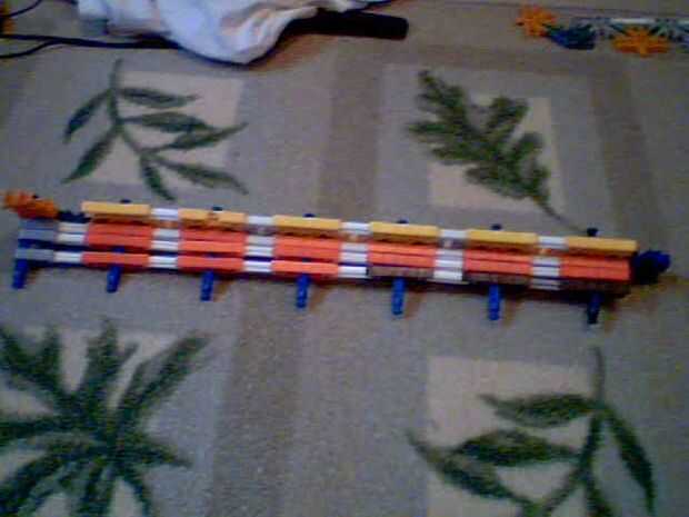 este francotirador dispara varillas gris con rojo conectores Unidos. It´s un francotirador muy potente. sus brotes a través de una caja de zapatos. habían hecho mi hermano y yo.Paso 1: el barril sólo tienes que seguir el pic´sPaso 2: mango y gatillo