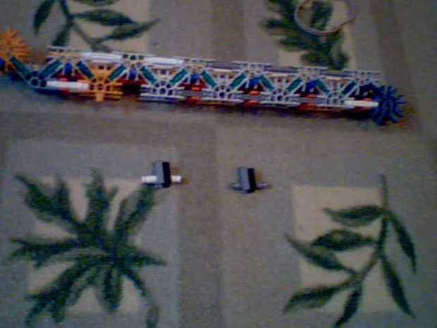 este francotirador dispara varillas gris con rojo conectores Unidos. It´s un francotirador muy potente. sus brotes a través de una caja de zapatos. habían hecho mi hermano y yo.