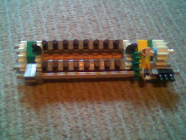 este francotirador dispara varillas gris con rojo conectores Unidos. It´s un francotirador muy potente. sus brotes a través de una caja de zapatos. habían hecho mi hermano y yo.