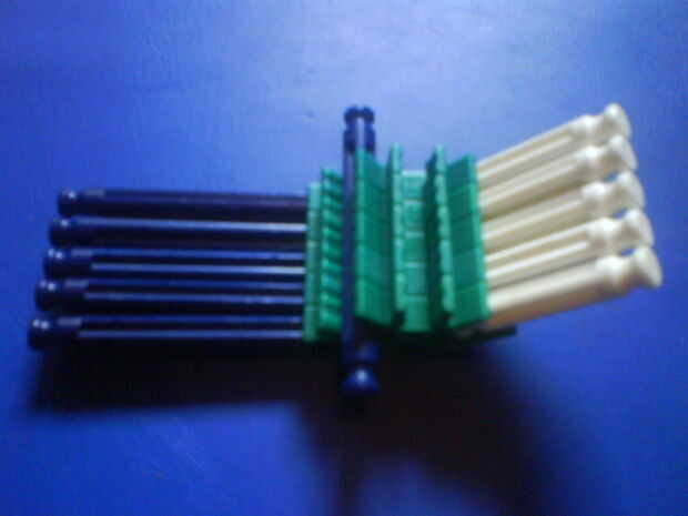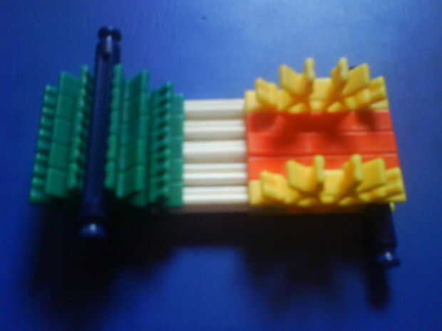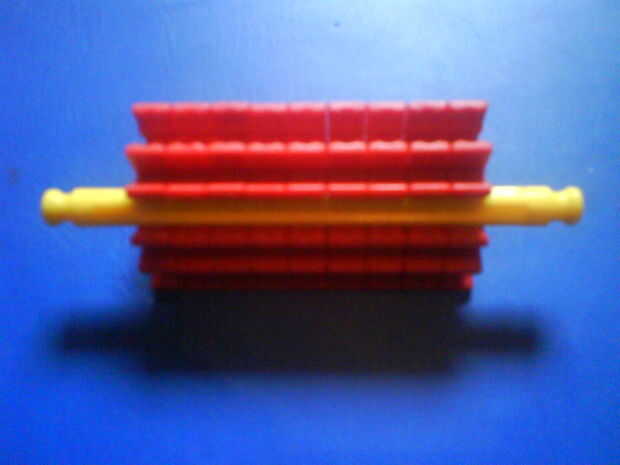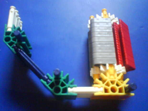 este francotirador dispara varillas gris con rojo conectores Unidos. It´s un francotirador muy potente. sus brotes a través de una caja de zapatos. habían hecho mi hermano y yo.