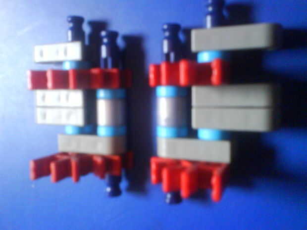 este francotirador dispara varillas gris con rojo conectores Unidos. It´s un francotirador muy potente. sus brotes a través de una caja de zapatos. habían hecho mi hermano y yo.