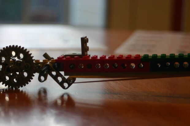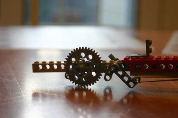 esta es un arma simple hecho con piezas de Lego technic. Se inspira en http://www.youtube.com/watch?v=dLSfBnGj2VQ. He hecho algunas mejoras para aumentar su alcance y le añadió un segundo disparo.Dispara las gomas sobre 15 pies.-Varad, 7years, Bangal