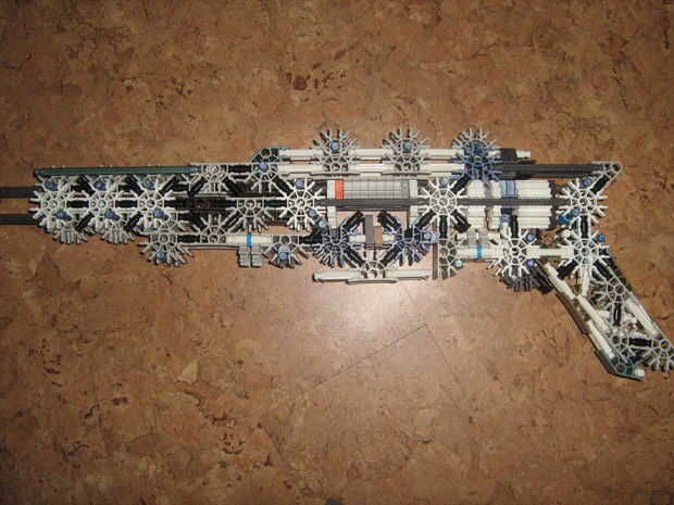 Este es el nuevo rifle de K'nex que acaba de hacer. Tiene una torreta ocho redondos en el frontal, (cortesía de 'KILLERK') y dispara rondas oodamo. Esta arma puede llegar a 35 pies, y teniendo en cuenta que este es mi primer rifle, creo que es bastan