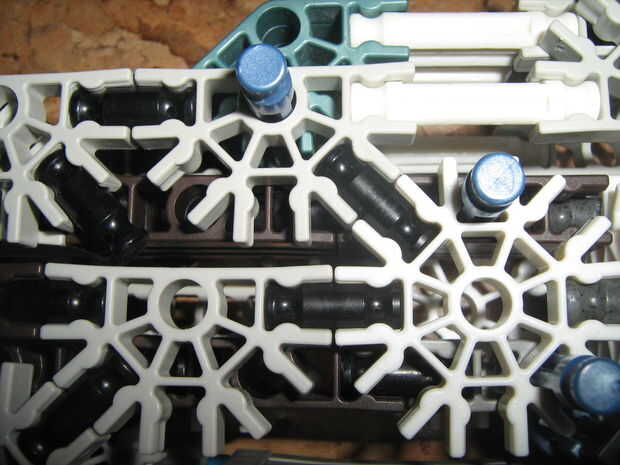 aquí están por fin las instrucciones de mi última versión de Wall-ESe reúnen todos estos bitsConectores-x 18 K'NEX conector 8 vías blanco-x 13 K'NEX conector 8 vías negro-122 K'NEX conector 4 vías 3D plata x451 K'NEX - x conector amarillo de 5 víasx