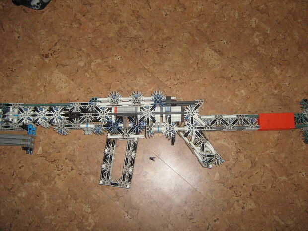 Este es el nuevo rifle de K'nex que acaba de hacer. Tiene una torreta ocho redondos en el frontal, (cortesía de 'KILLERK') y dispara rondas oodamo. Esta arma puede llegar a 35 pies, y teniendo en cuenta que este es mi primer rifle, creo que es bastan