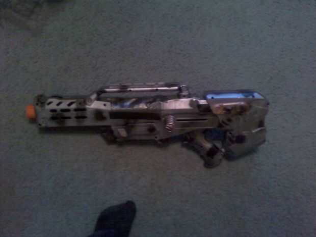 he siempre quería tener un rifle, pero no quería gastar dinero en uno. Decidí tomar una de mis muchas armas de nerf y convertirlo en un rifle. Es muy fácil y barato.Paso 1: materiales Pistola de NerfNerf dartPlumaPaso 2: Paso 1 Desmontar el bolígrafo