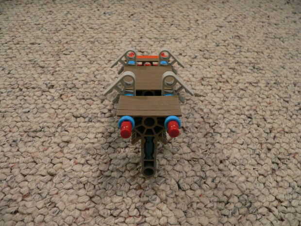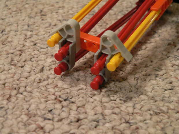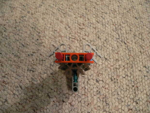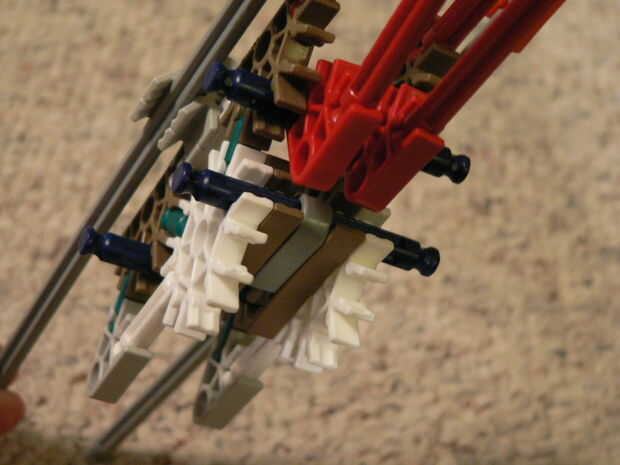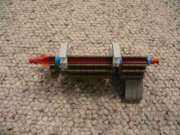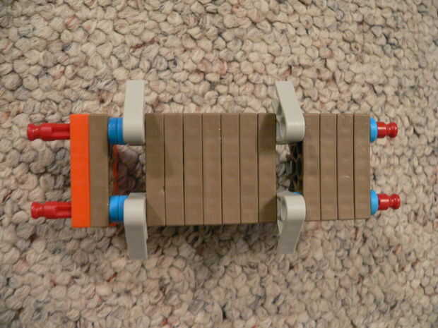 La manija se hace de 16 conectores azul oscuros y 3 barras rojas.