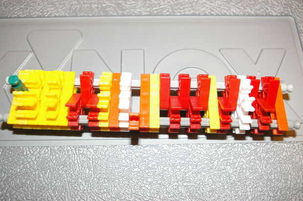una versión de KVG de un rifle de plasma de Halo.Paso 1: piezasLista de piezas:Barras deVerde - 22Blanco - 10Azul - 12Amarillo - 13Rojo - 13Gris/negro - 12ConectoresGris - 8Gris claro - 38Naranja - 14Rojo - 4Verde - 8Amarillo - 38Blancos copos de nie
