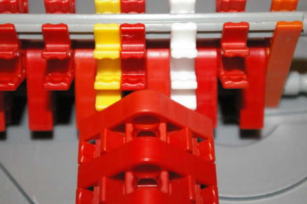 una versión de KVG de un rifle de plasma de Halo.Paso 1: piezasLista de piezas:Barras deVerde - 22Blanco - 10Azul - 12Amarillo - 13Rojo - 13Gris/negro - 12ConectoresGris - 8Gris claro - 38Naranja - 14Rojo - 4Verde - 8Amarillo - 38Blancos copos de nie