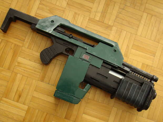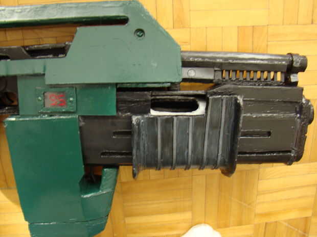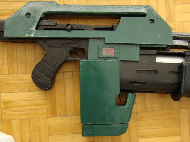 disfraces de Halloween No este año, pero recientemente hizo una proposición para un amigo. He aquí, una réplica de cartón del rifle de impulsos M41-A como se ve en los película Aliens... algo así. En mi prisa por terminarlo, hay algunos pequeños detalles que olvidé, como las cosas de la pinza en la revista, pero en general es bastante precisa. Un error de cálculo por mi parte hace el lanzador de la Granada más grande que el original, pero creo que lo hace parecer más mal culo :) Lamento no tomar fotografías durante el proceso, pero estoy muy tentado a construir otra más para mi porque es tan freaking cool para sostener a uno, así que mantener un ojo hacia fuera para un Instructable completo posteriormente aunque probablemente no antes de primavera.