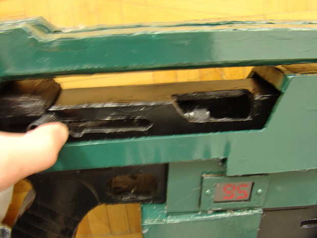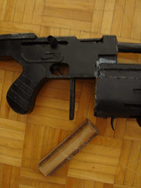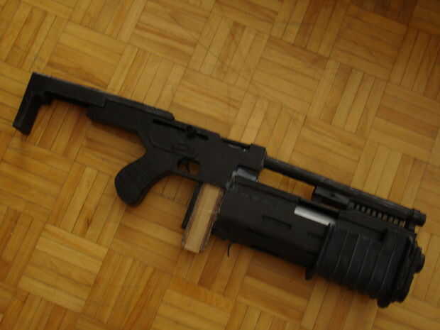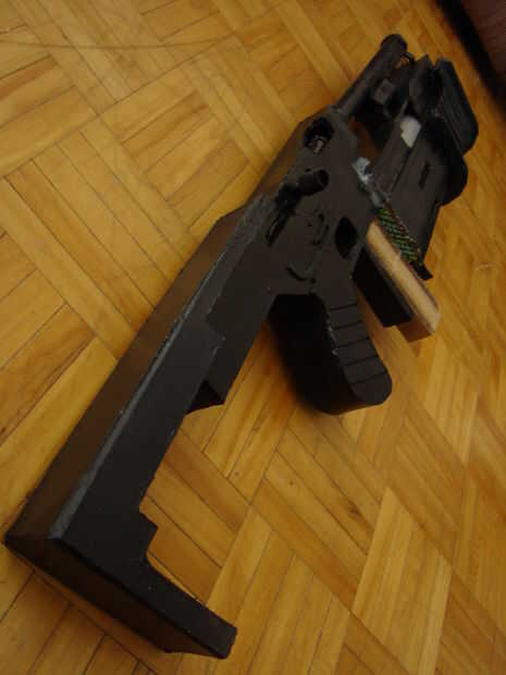 El apoyo es 95% cartón, construido en una escala de 1:1 como el mejor posible. Estaban hechas de alfileres de la ropa de plástico y se puede tirar. La revista puede ser sacada y en su lugar cuando se empuja hacia atrás. El perno de carga se puede tirar atrás (hecha de un Portarrollos de papel higiénico), abrir el puerto de eyección de la cáscara. El lanzador de la Granada puede ser bombeado hacia atrás para abrir el puerto de carga. Con todo, es casi un juguete totalmente funcional.