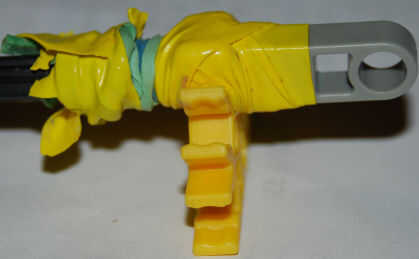 Como se ve en la figura # 2, se determinará la longevidad de su pin en cuanto envuelva con la goma elástica y cinta de vinilo. Este pin aquí ha visto huelgas casi 200.