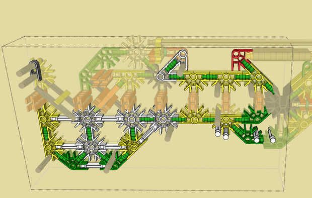 Ahora la acción se está conectada con el resto de la pistola hacia abajo en la parte inferior con los conectores verdes. Será así para las siguientes dos capas en estas instrucciones.