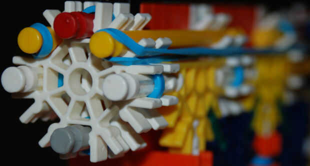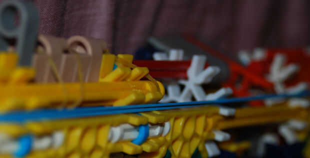 Cuadro # 5: Por último, estas bandas enrolle hacia el final. Superior más bucles de banda en lazo de bandas de fondo amarillo, varillas blanco.