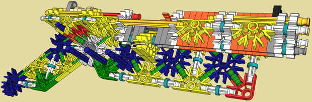 Este es el nuevo rifle de K'nex que acaba de hacer. Tiene una torreta ocho redondos en el frontal, (cortesía de 'KILLERK') y dispara rondas oodamo. Esta arma puede llegar a 35 pies, y teniendo en cuenta que este es mi primer rifle, creo que es bastan