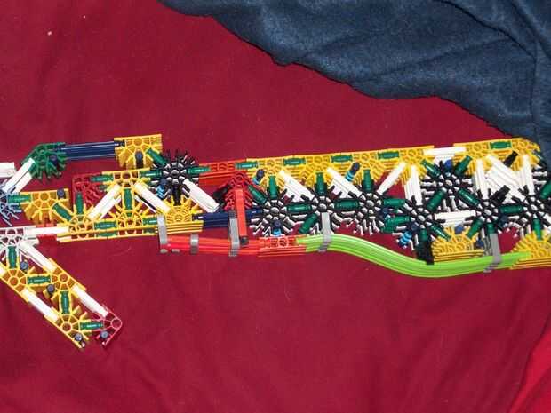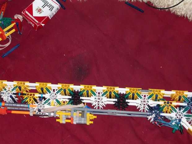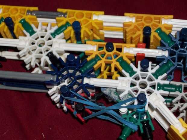 Bueno, como dice el título, este es un Rifle de Fed de la correa K'nex. Estoy seguro de que este es el primero de su clase que no requiere un motor y no es solamente un puñado de provocadores de bloque. Tomé un pedazo de la torreta, hecha un pelín má