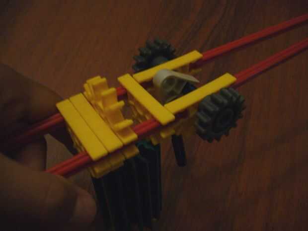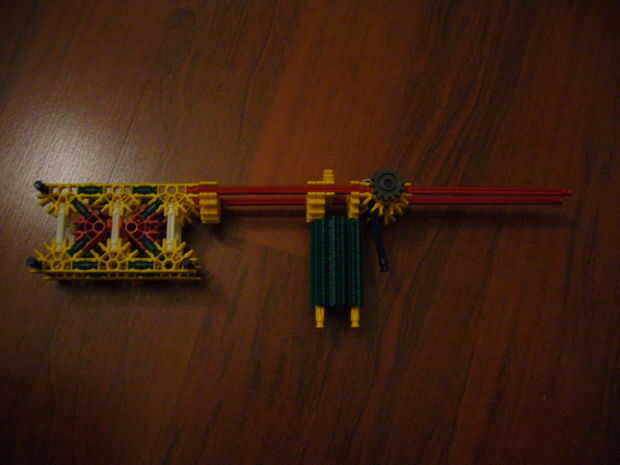 este arma es un rifle de francotirador kne'x extremadamente de gran alcance y una pistola metralla todos en un cañón.Paso 1: La acción Las varillas bendy amarillo ven más cool, así que uso es puede!Paso 2: El mango Todo lo que tienes que hacer es jun