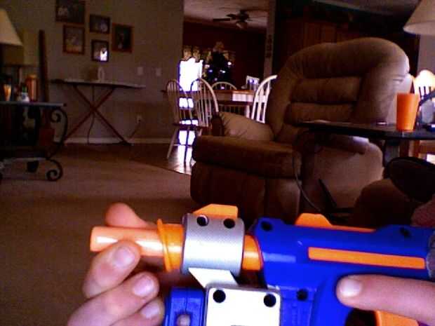 esto es rifle nerf principal uso en combate. Nuestras guerras de nerf siempre son en interiores por lo que no se necesitan armas modificadas. Esta pistola nerf tiene un alcance de acog (binocular), una linterna, un lanzador de granadas (de trabajo) y