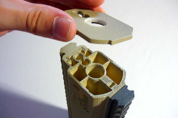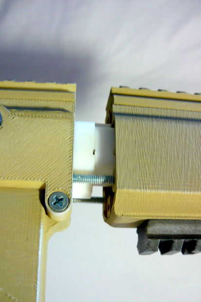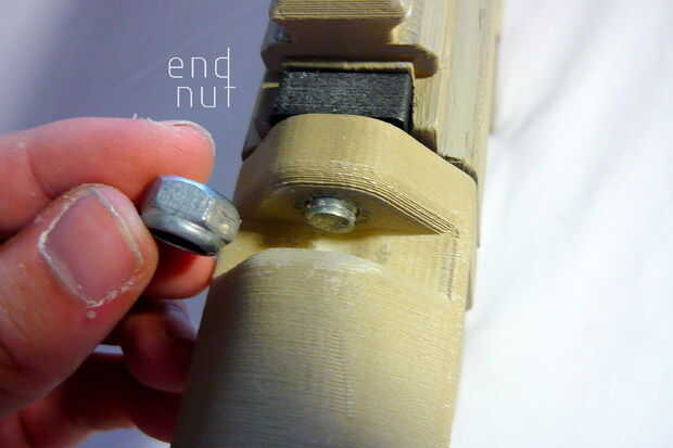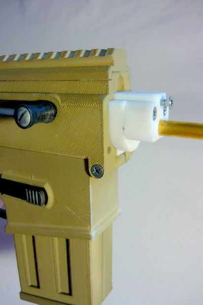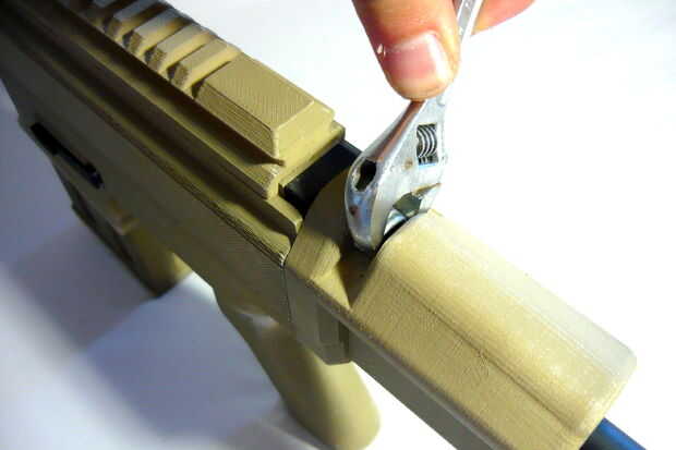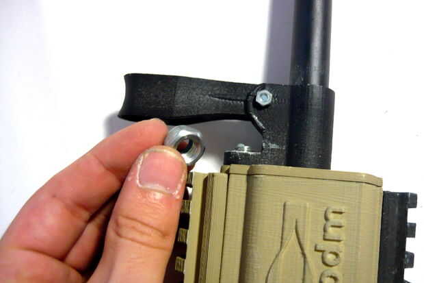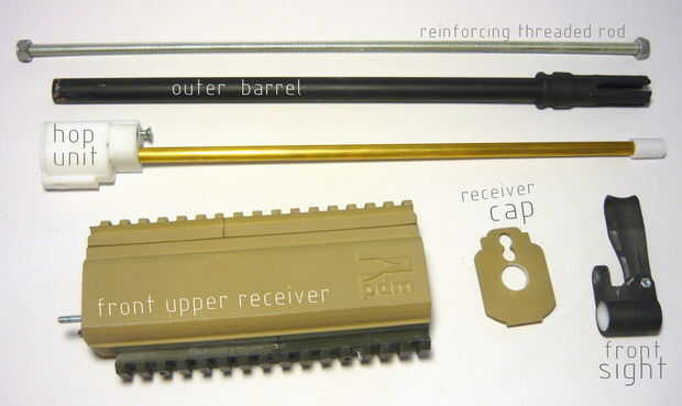 Ahora a la Asamblea la mitad delantera del receptor. Verás una barra roscada grande hasta arriba, esto brinda una fuerza de abajo toda la longitud de la pistola y la peor parte de la fuerza del pistón golpea el cilindro de la cabeza, los osos para que el plástico no tiene, haciendo el arma muy durable. Pero por supuesto, si se rompe una parte, a otro! Me encanta la impresión 3D...