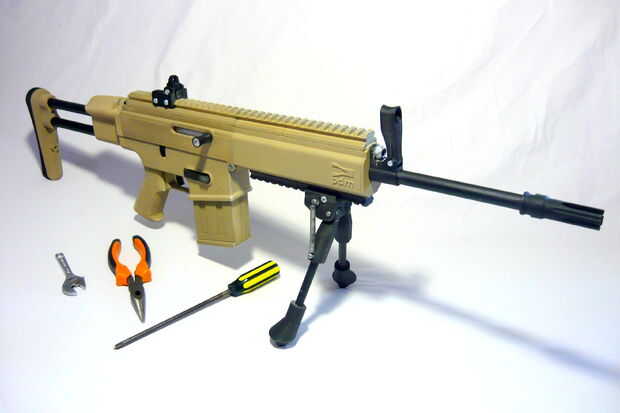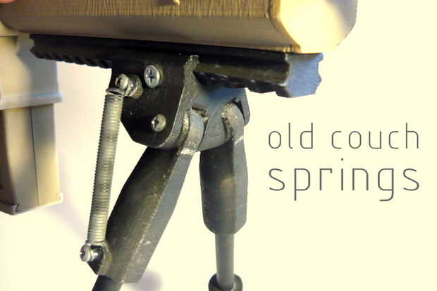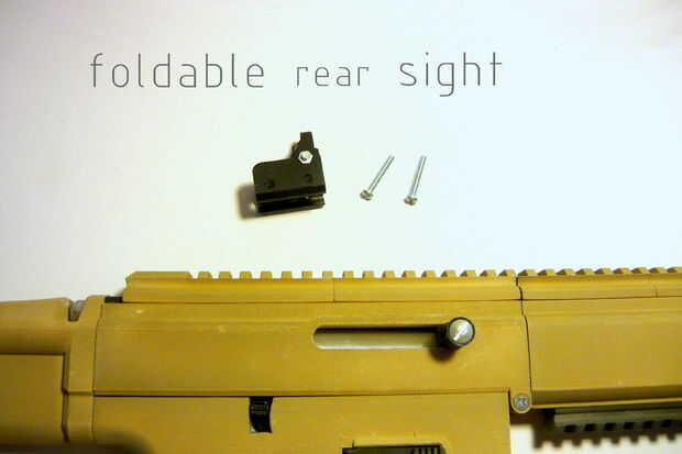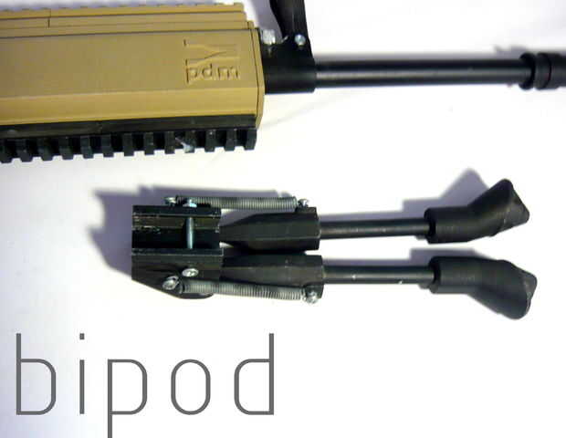 Finalmente añadimos la guinda en el pastel, mira trasera y bípode. Estos son fáciles de armar una vez que has impreso cualquiera de las partes, así que lo dejo a él.