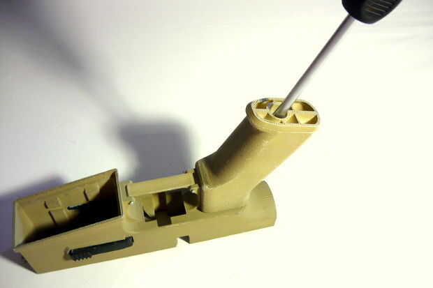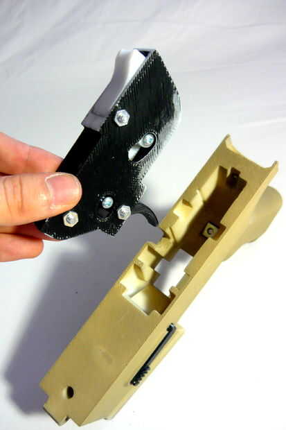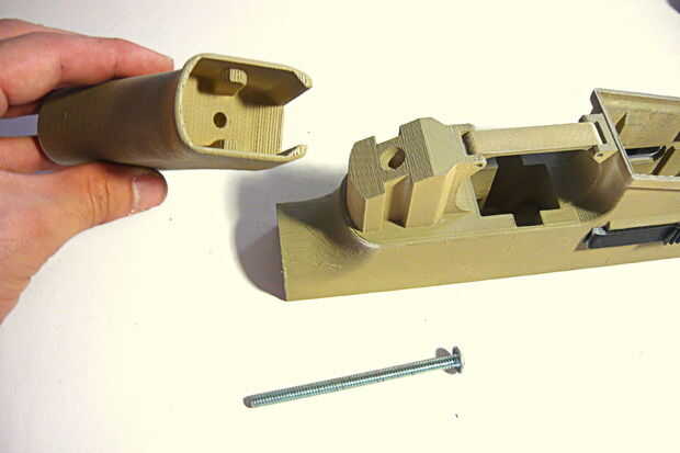 Tal vez resulte sorprendente, la caja de disparo no se fija realmente en el recibidor inferior. Esto es porque cuando el receptor superior se emperna en la parte superior, tiene la caja de disparo en su lugar. En mi próximo diseño me estoy inclinando hacia una Asamblea con los accesorios mínimos y sin necesidad de herramientas.