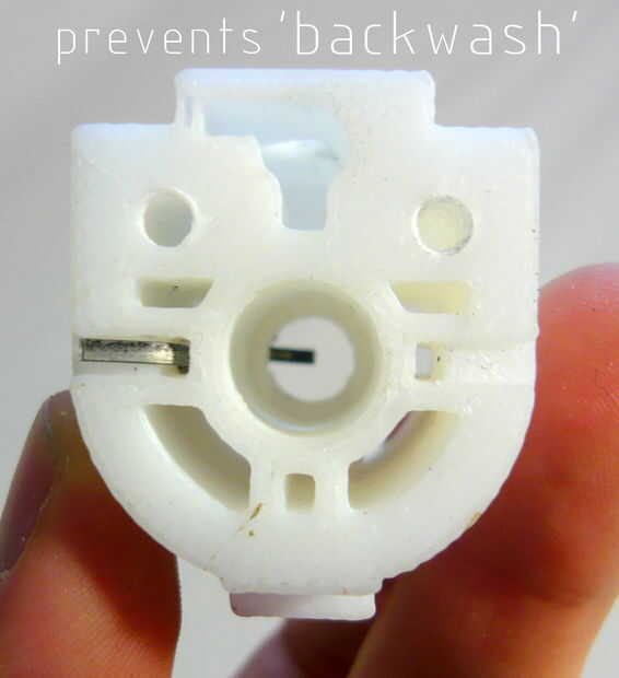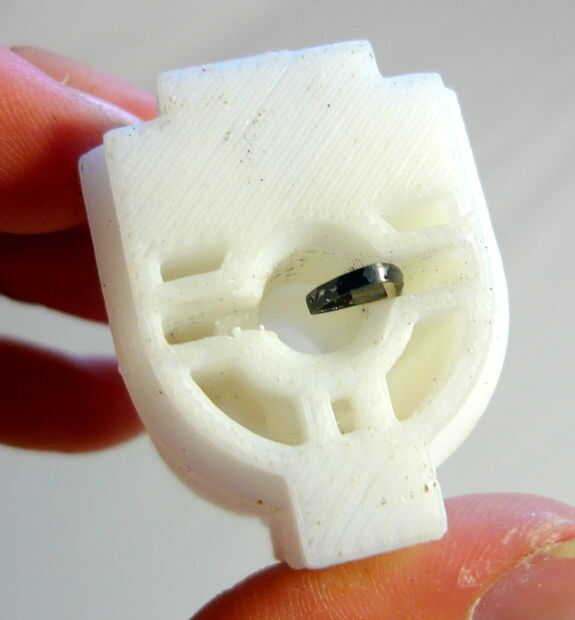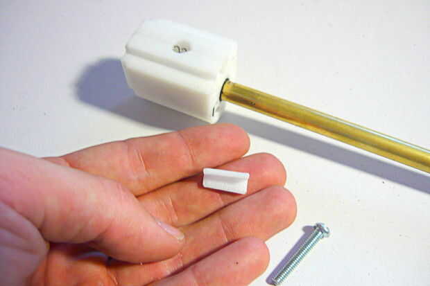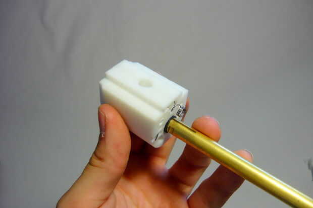 Esta unidad de salto utiliza una diapositiva ligeramente angulada empuja un rodamiento de bolas (en este caso, un bb) hacia el manguito de goma para que la cantidad de contacto entre el bb y el caucho se puede ajustar finamente.