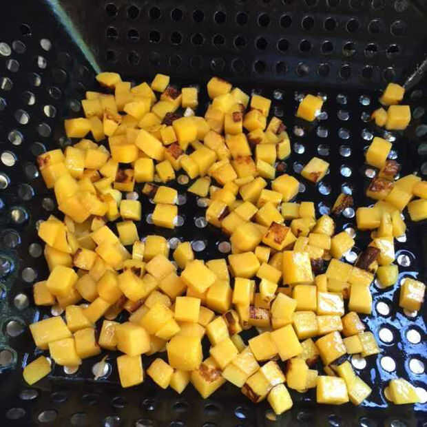 Puede asar la calabaza cubierta con 1 cucharada de aceite de oliva en un horno de 425 grados (que es ideal para clima frió) o se puede hacer lo que hizo y asar la calabaza preparada cubierta con aceite de oliva (1 cucharada) en una parrilla caliente con una cesta de barbacoa. Sólo añadir la calabaza a la cesta y cierre la tapa durante unos 15 minutos o hasta que la calabaza esté dorada y tierna (pero no suave o blanda).