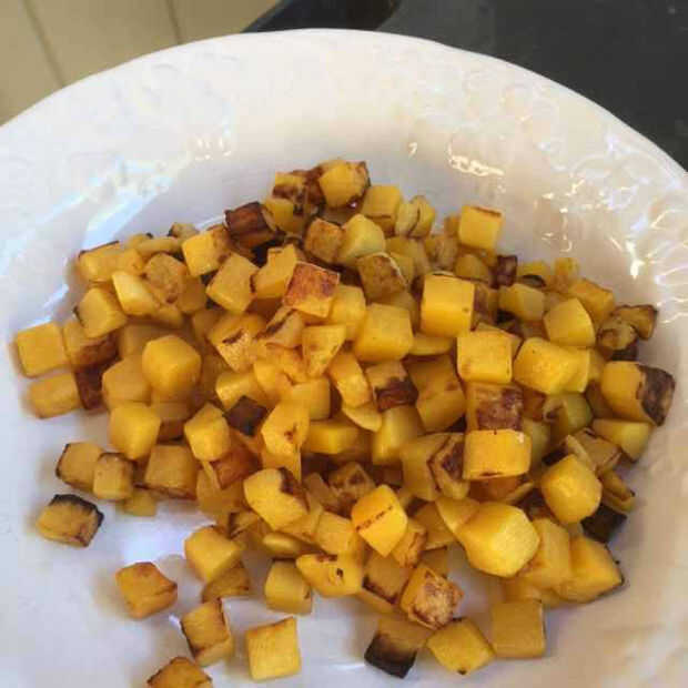 Cuando la calabaza está tierna y marrón, retirar a un plato o tazón y reservar.
