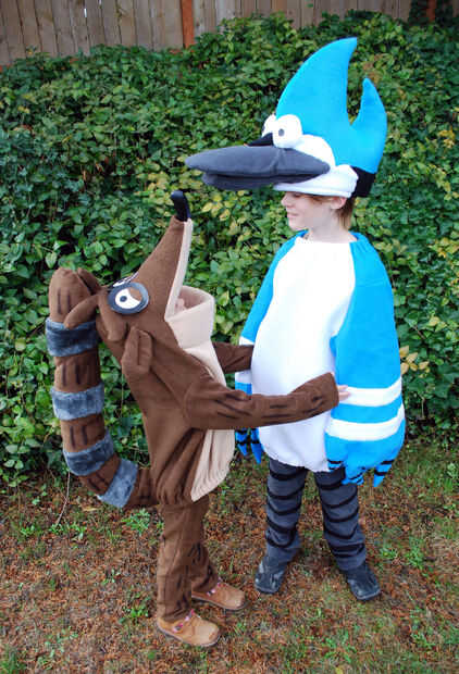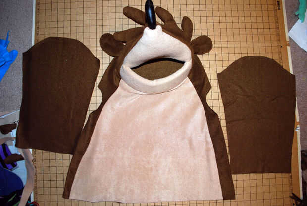 Pretende escribir un tutorial, pero terminó volando y no tomar muchas fotos del proceso. Baste decir, los dos trajes costo $40 en felpa y espuma, 14 horas de la tarde en la noche corte y costura y un desorden gigante en mi estudio. Valió la pena sin embargo. Mis hijos tiene uno de la misma clase trajes de dos de sus personajes favoritos. sí-uhh!