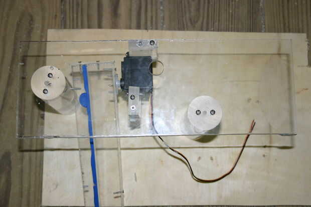 Voltee la Asamblea y fije el servo cilindros motor y acrílico para la base.
