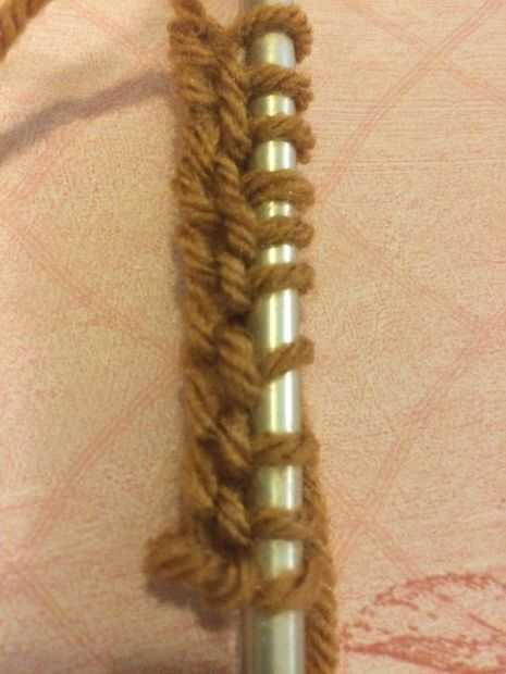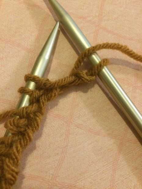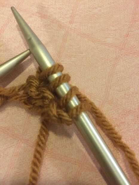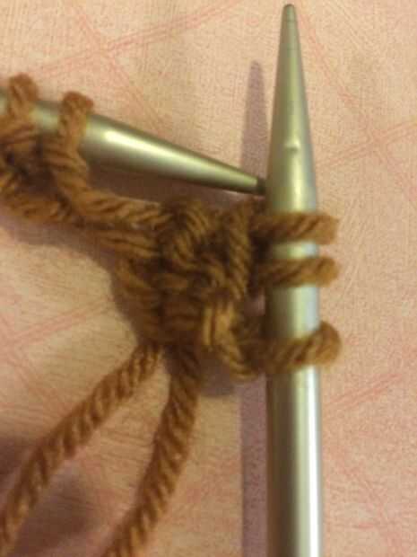 Tejer los siguientes dos puntos y enrolle el hilo sobre ellos y fuera de la aguja.