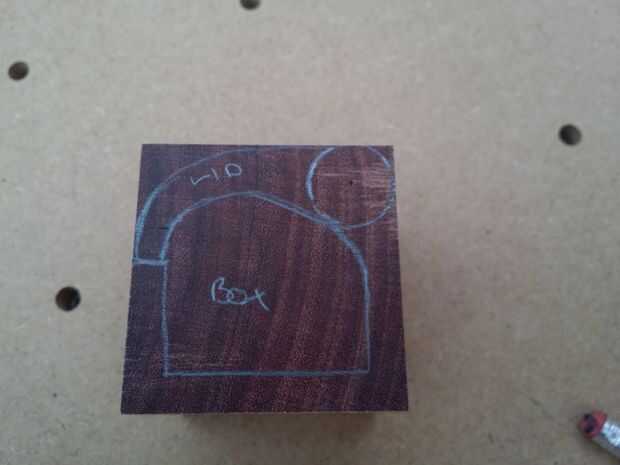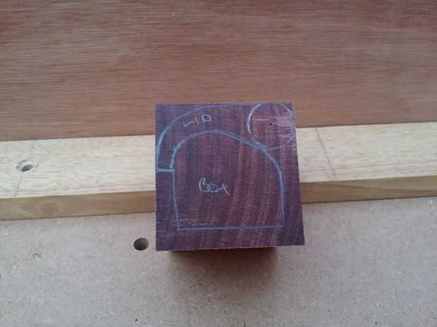 Utilizar un compás para dibujar un círculo en la parte superior derecha del corazón púrpura se trata de la bisagra de la tapa así que no necesita ser grande solo tiene que tener un centro de marca por lo que se puede taladrar el agujero para la varilla.