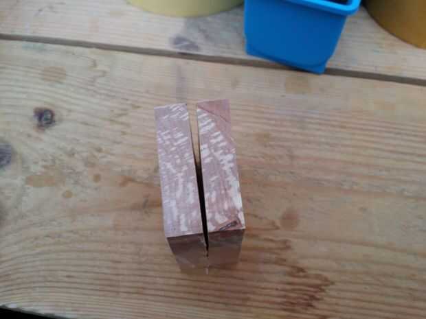 Usando la cuchilla de 1/4 de pulgada corta el centro de la haya para hacer los dos lados