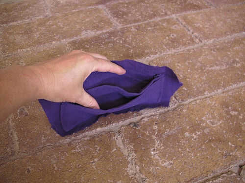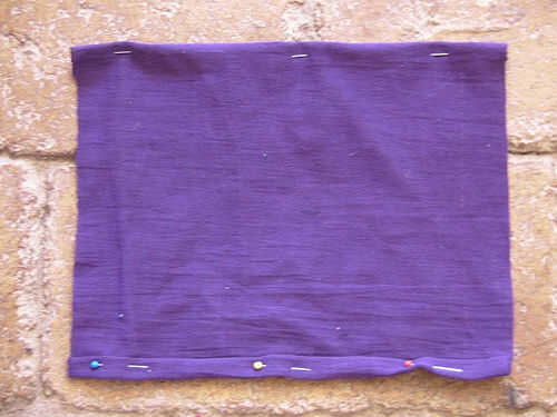 - Tome la 10" por 10" pieza de tela y el dobladillo de la parte superior e inferior.