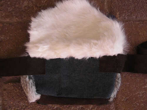 1. Coser un extremo de una tira para el lado malo de "ext. "Hacia atrás. Quiere ser 1/4"- 1/2" por debajo de la parte superior de la tela y unos 2" en él. Esta sosteniendo el peso de la riñonera, así que coser bien.
