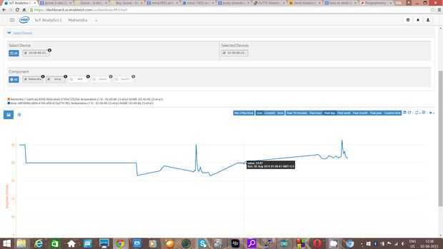 Como se puede ver, los datos se carga en el tablero de instrumentos y nos estamos viendo en forma gráfica. Parcelas la lectura con respecto a la escala de tiempo. Este datos compartidos y han consultado en cualquier lugar. Por lo tanto, estos datos pueden enviarse incluso a doctor para análisis de temperatura y el ritmo cardíaco del cuerpo.