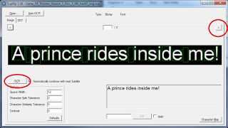 Haga clic en el botón OCR (en círculo) y pasar y convertir la imagen a texto, solicitándole que se atasca. Cuando lo hace, se mostrará la imagen de la letra (o signo de puntuación) se pega en la parte inferior derecha. Escriba en el cuadro, golpeó "OK" y luego seguir adelante hasta que ha decodificado el fotograma actual. Pasar el siguiente fotograma haciendo clic en la flecha derecha (un círculo), golpe "OCR" otra vez y repetir el proceso hasta que esté listo. No tarda más de unos pocos minutos para la mayoría de las películas hacer las cosas de esta manera, y los beneficios lo hacen fácilmente vale la pena en mi opinión.