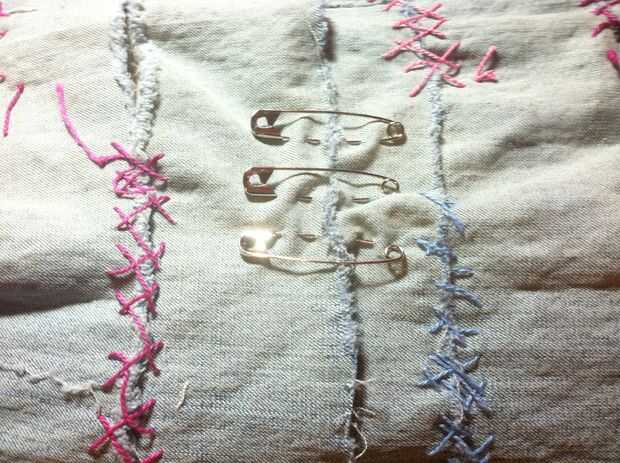 Añadir grandes y pernos de seguridad, parches, postes de madera de colores, botones y cualquier otros misceláneos más embellecen la prenda.