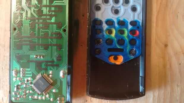 Una volta aperto, che noterete i telecomandi contengono gli stessi componenti: oltre ad un circuito stampato, quales de los il de gommato del foglio de ONU è presente ha i modo da un lato e dei cerchietti neri dall'altro. Questi cerchietti sono di gomma conduttiva, quando premete un tasto mandato la gomma conduttiva contro le corrispondenti zona (nere anch'esse) del circuito stampato, Faccendo contatto por dire al telecomando di mandare il corrispondente segnale un infrarossi.