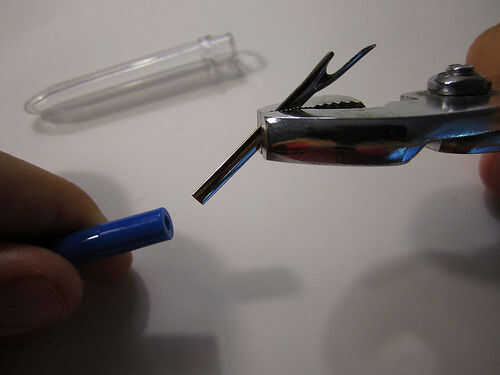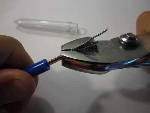 Use un par de pinzas para tirar de la parte metálica de su destripador de la costura de su mango de plástico. Más modelos de destripador de la costura son relativamente similares y fáciles de desmontar esta manera.